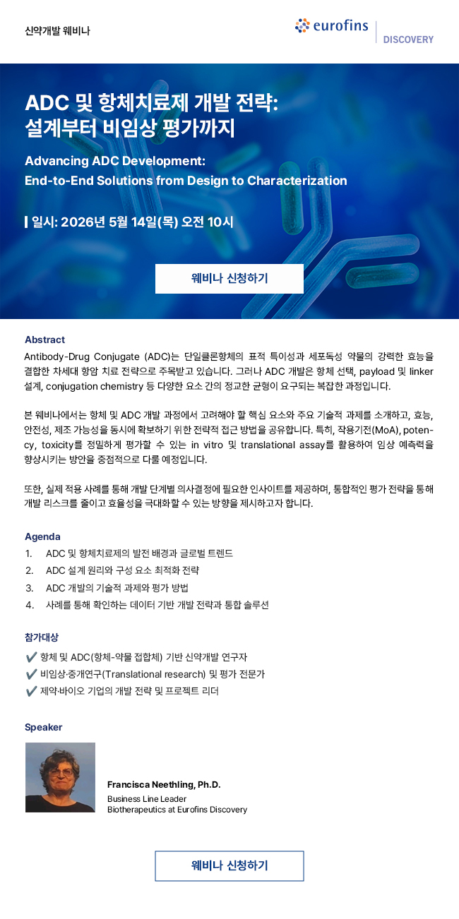 ADC 및 항체 치료제 개발 전략과 관련된 웨비나가 있어 안내드립니다.