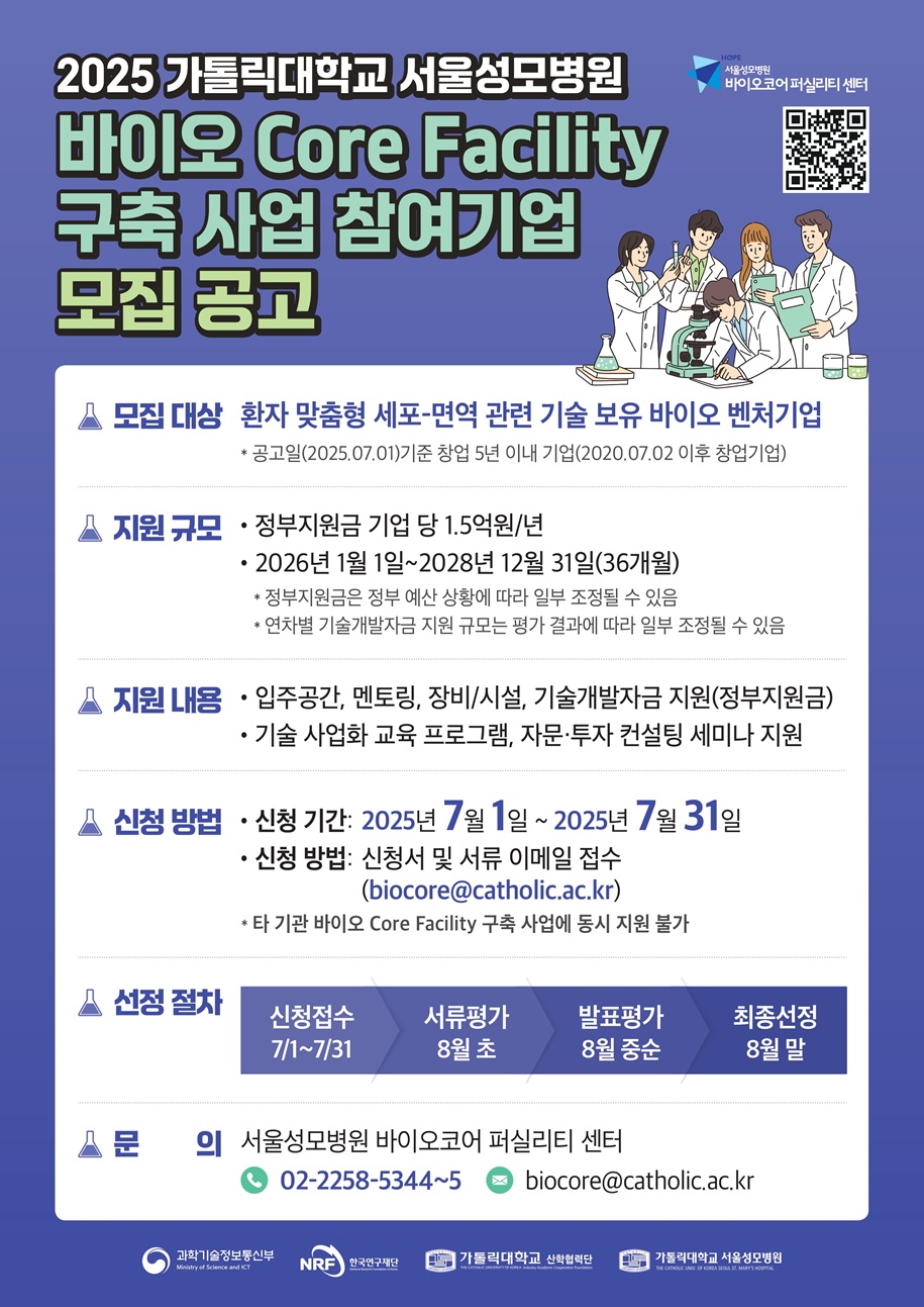 [포스터] 2025년 서울성모병원 바이오 Core Facility 구축사업 참여기업 모집 공고.pdf (다운로드 : 102회)
